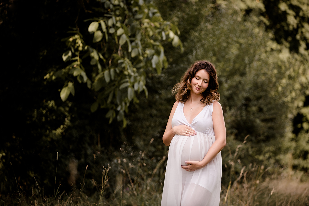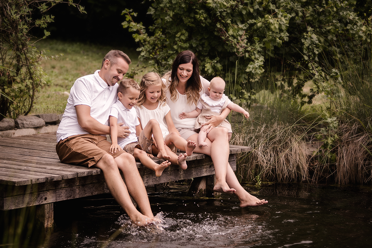 Direkt vor der Ateliertür befindet sich der große Fotogarten. Hier gibt es nichts, was es nicht gibt! Ein Märchenland mit vielen bezaubernden Plätzchen... Die wilde versteckte Wiese lädt zum Tanzen und Springen ein, während die von Efeu umwucherten Bäume ihre Geschichten aus alter Zeit erzählen. Im bunten Blumengarten hingegen fühlt man sich fast schon ein bisschen wie Alice im Wunderland, wenn einem die duftenden Blümchen fast über den Kopf ragen. Gegenüber der alten Scheune mit ihren urigen Holzbrettern findet man den zauberhaften Teich, der von großen blauen wunderhübschen Libellen umschwirrt wird. Auf dem ins Wasser ragenden Holzsteg darf man gerne ein Weilchen verweilen und dabei seine nackten Füßchen ins Wasser baumeln lassen. Wenn man Glück hat, entdeckt man sogar einen kleinen Molch, der neugierig aus dem Wasser lugt und beim Abtauchen sein orangefarbenes Bäuchlein präsentiert.